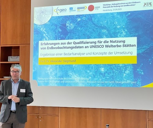 Heidelberg, 23. September 2025. Die Staatlichen Schlösser und Gärten Baden-Württemberg, das SATCULT-Projekt und der UNESCO-Lehrstuhl für Erdbeobachtung und Geokommunikation von Welterbestätten und Biosphärenreservaten an der Pädagogischen Hochschule Heidelberg hatten geladen, und 24 Führungskräfte aus der Kulturgüterschutz und der Geoinformation folgten der Einladung zu einem interdisziplinären Workshop.